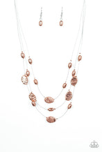 Featuring smooth and delicately hammered finishes, mismatched shiny copper beads are threaded along dainty silver wire, creating floating layers below the collar. Features an adjustable clasp closure.